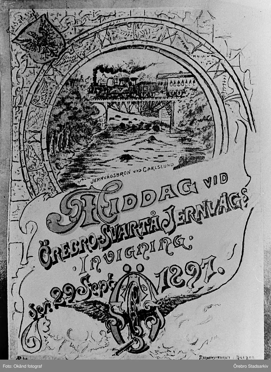Affisch gällande middag vid Örebro-Svartå jernvägs invigning, 1897
