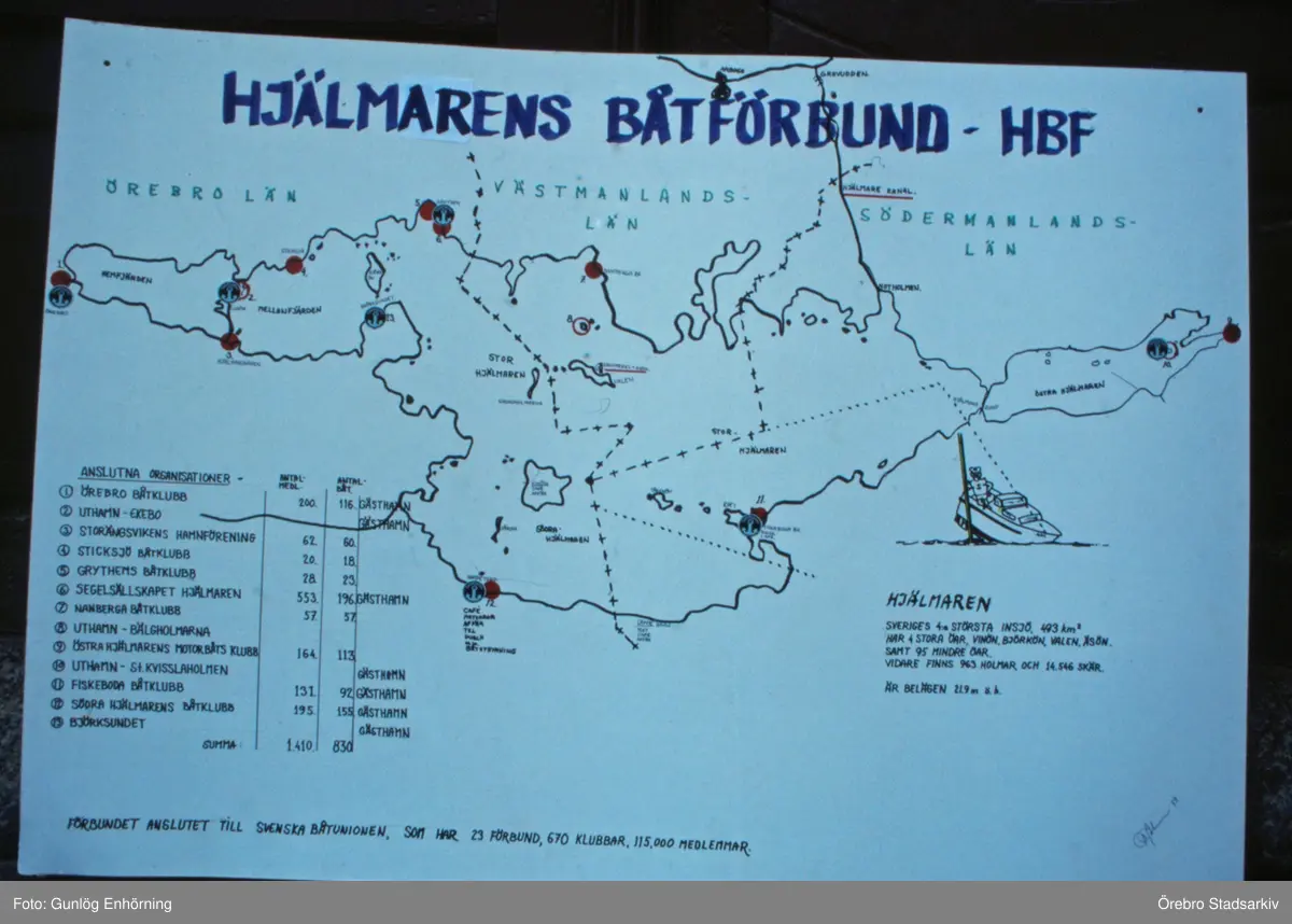 Hjälmarens båtförbunds karta, 1989