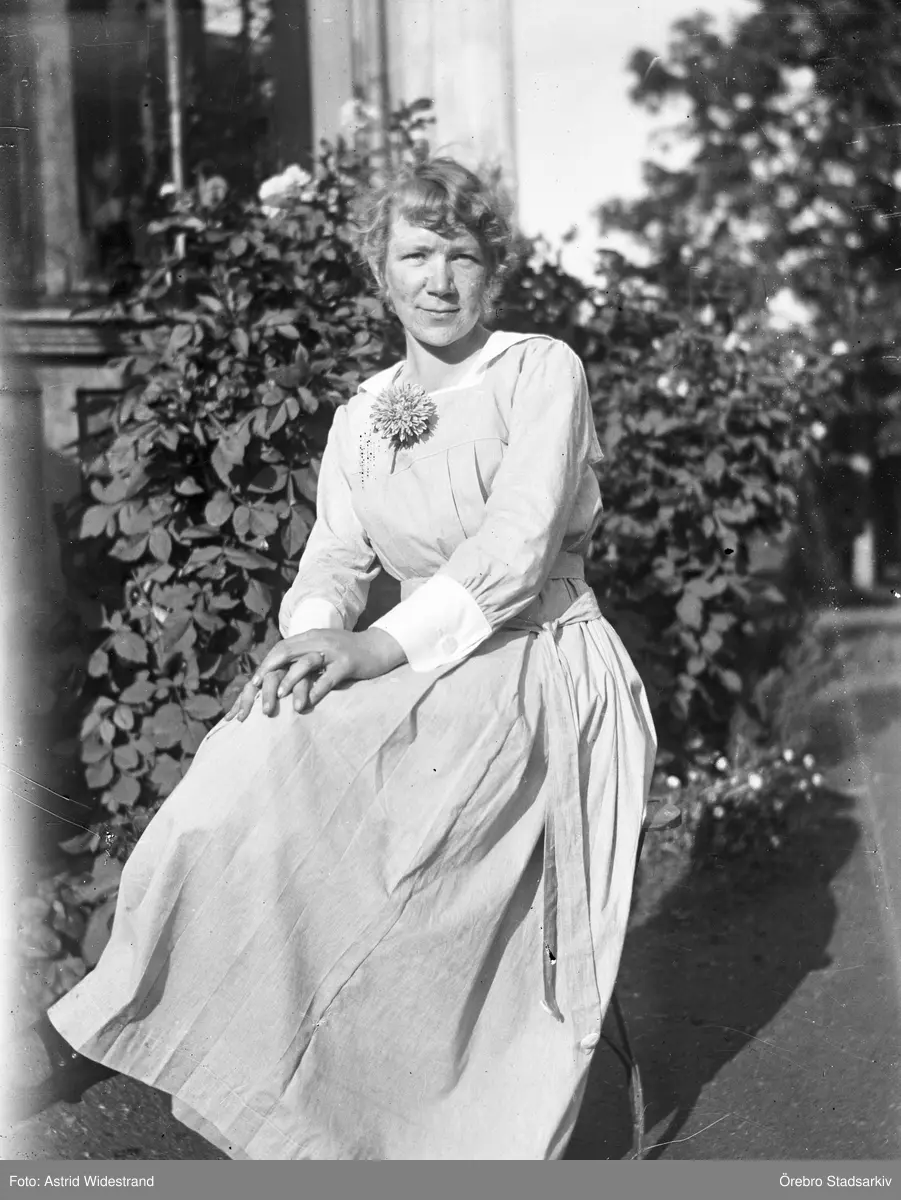 Kvinna framför hus, 1918