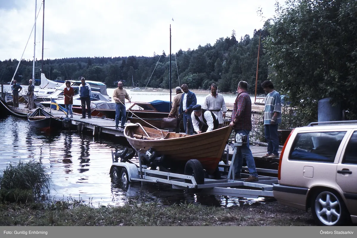 Iläggning av båter inför rodd på Mälaren till Birka, 1996