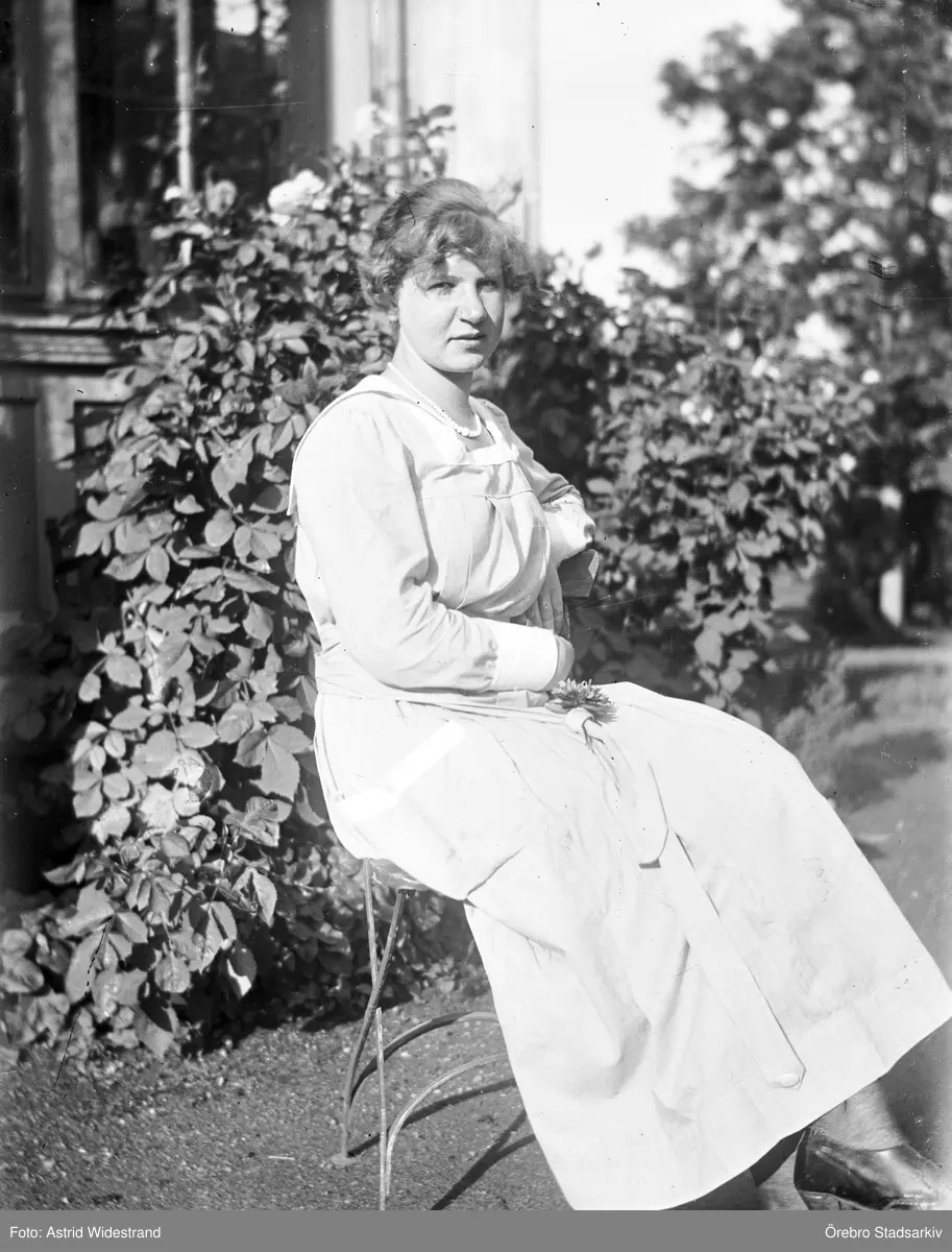 Kvinna framför hus, 1918