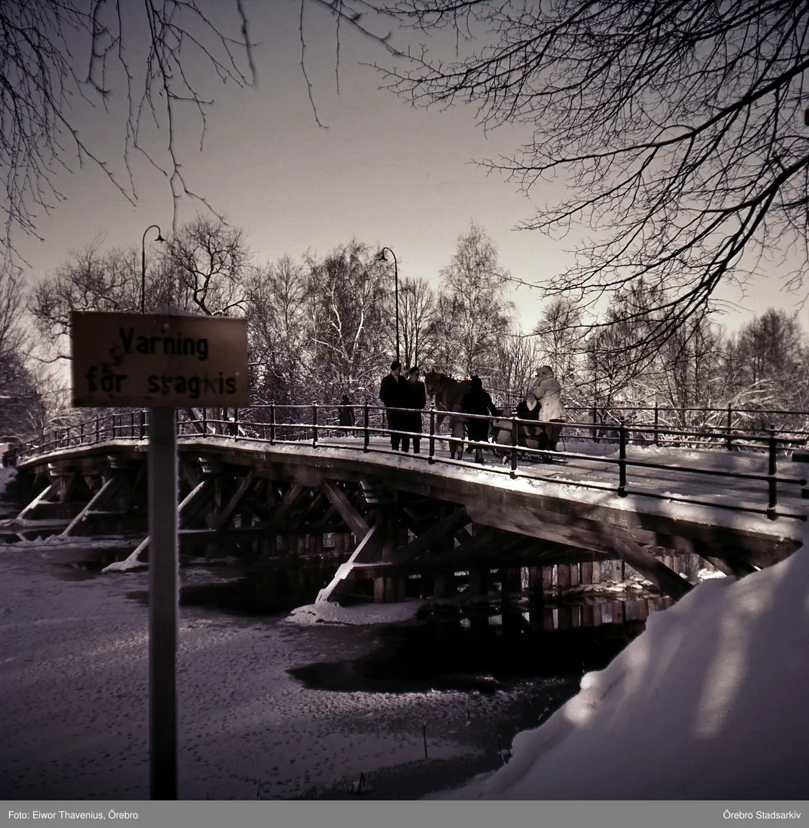 Häst med släde på Hagabron, 1950