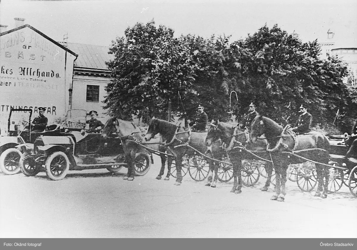 Taxibilar och hästdroskor på Järntorget, ca 1912