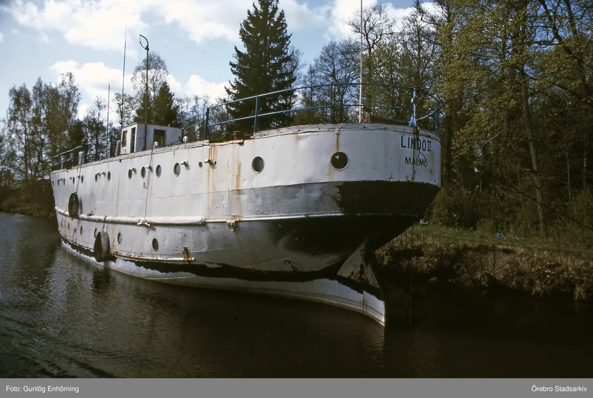 Lindö II bogserad till Hjälmare kanal, 1992