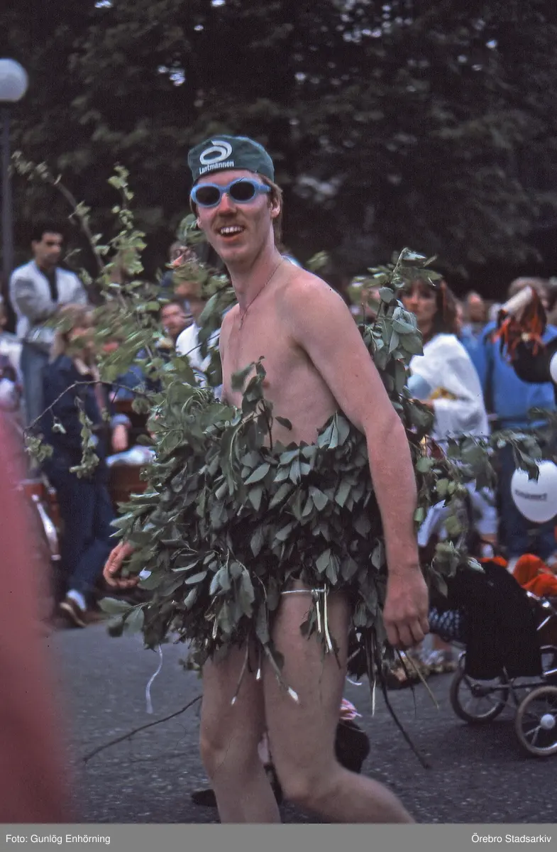 Man klädd i björkris under Örebro-karnevalen, 1986