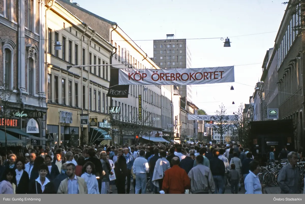 Reklam för Örebrokortet under marknadsafton, 1987