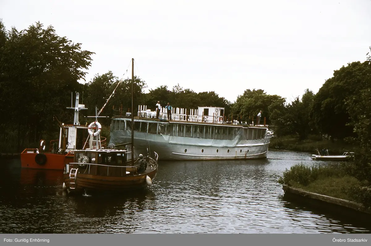Bogsering av båten Örebro III vid oljehamnen, 1993
