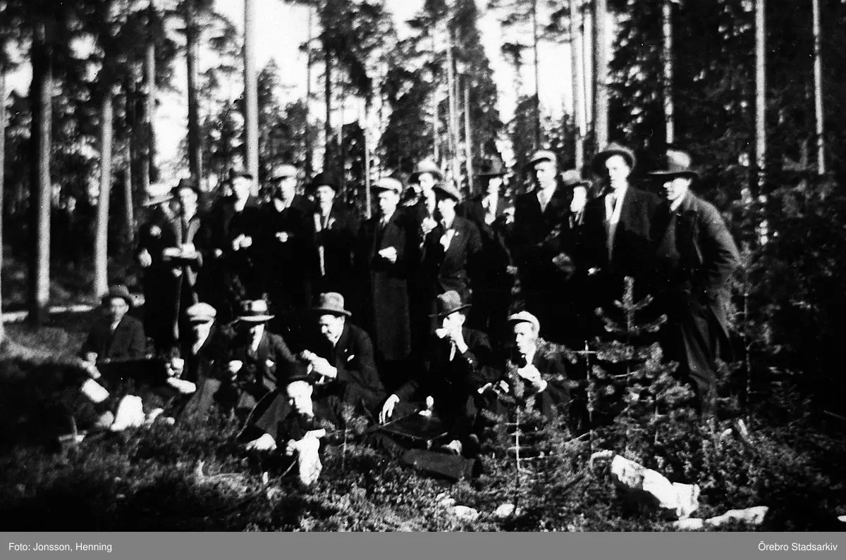 Idrottsfolk på resa till Röfors i två bussar, 1930-tal