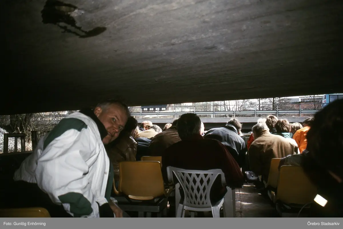 Turistbåten Paddan passerar under bro, 1997-05-03