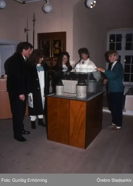 Besökare visas runt på utställning på turistbyrån på Örebro slott, 1989