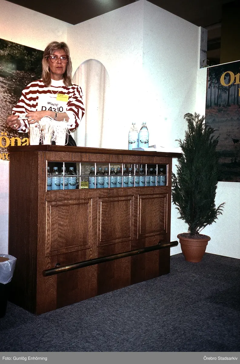 Monterdisk med Lokaflaskor på turistmässan, 1989