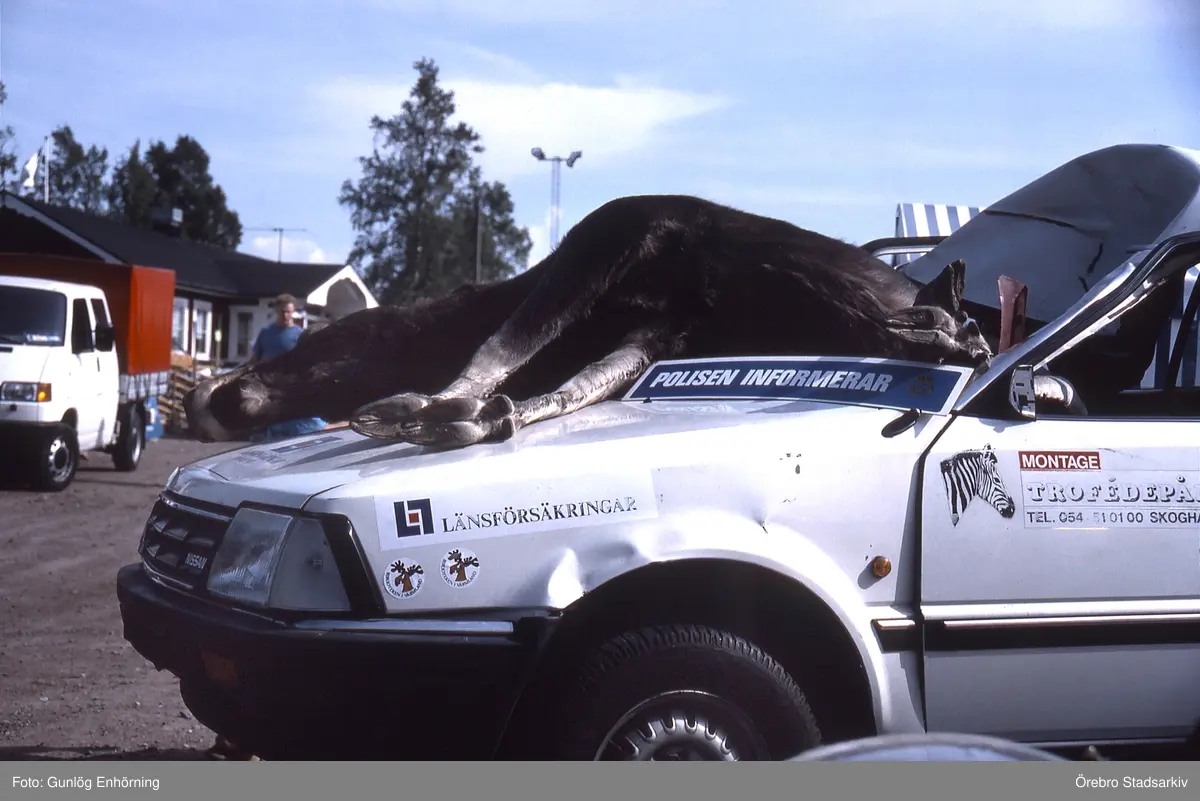 Demonstrering av älgkrock på vilmarksmässan, 1992