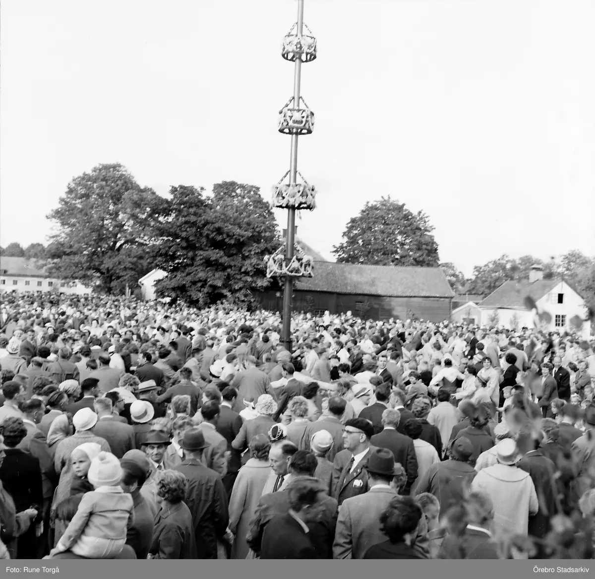 Besökare vid midsommarfirande i Brevens bruk, 1961