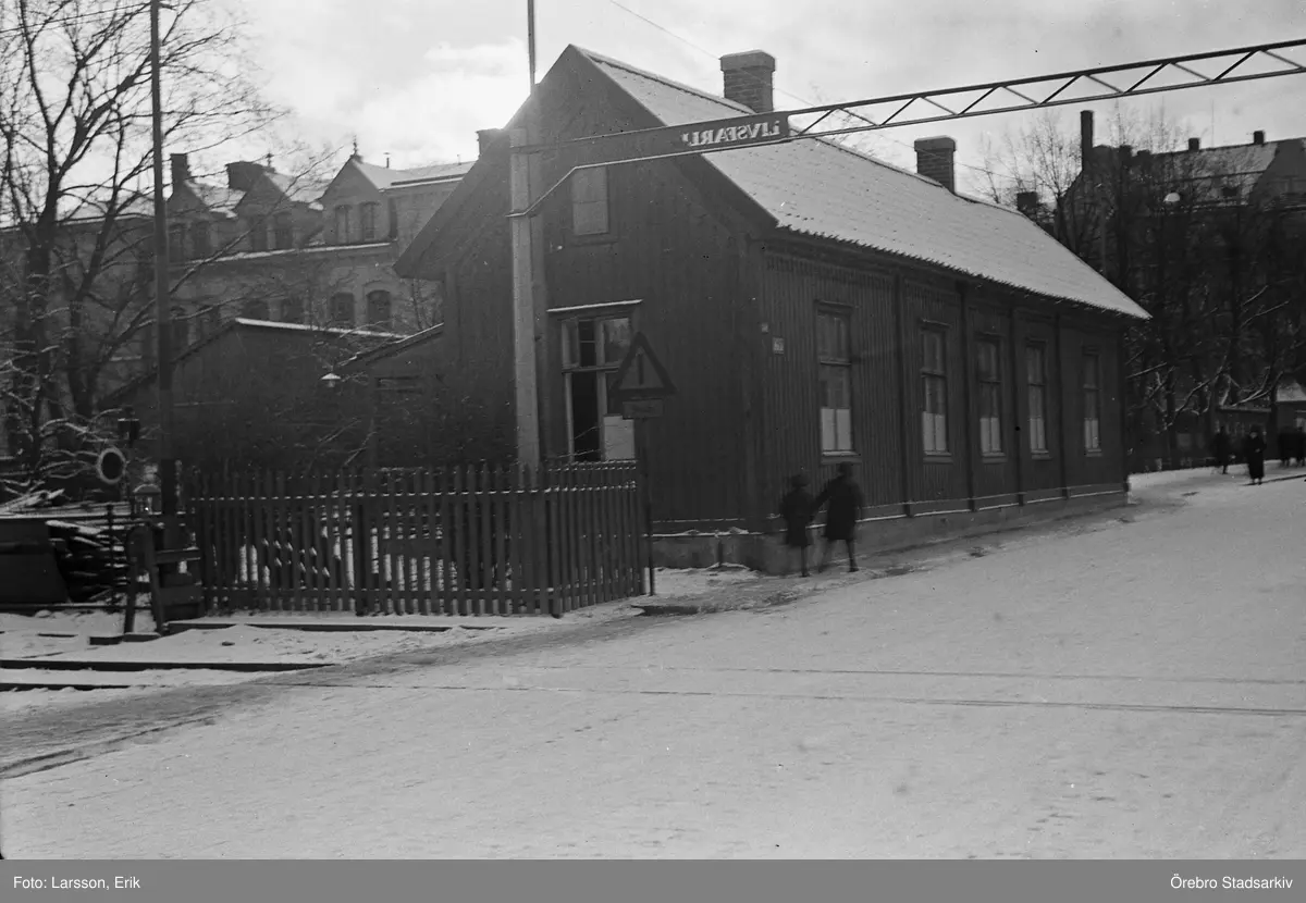 Titel: Byggnad vid Köping-Hult järnvägen, 1937
