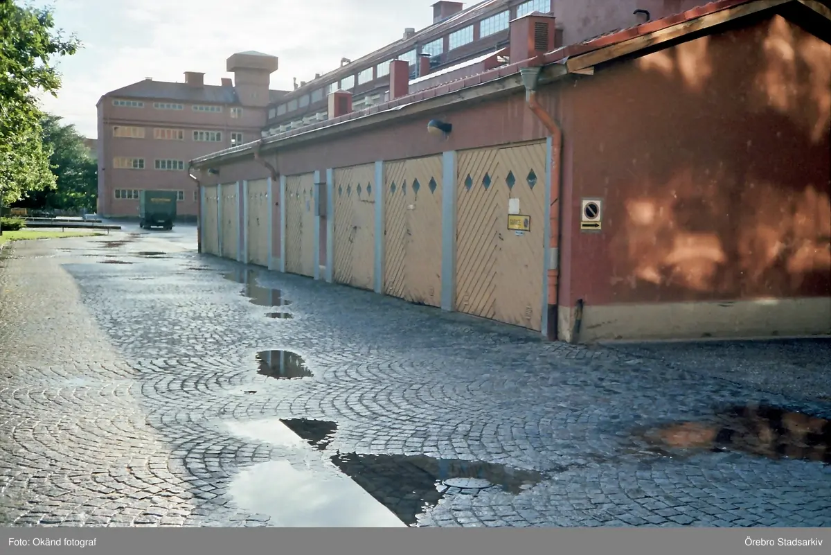 Garagelänga vid Oscariahuset på Fabriksgatan 52, 1980-tal