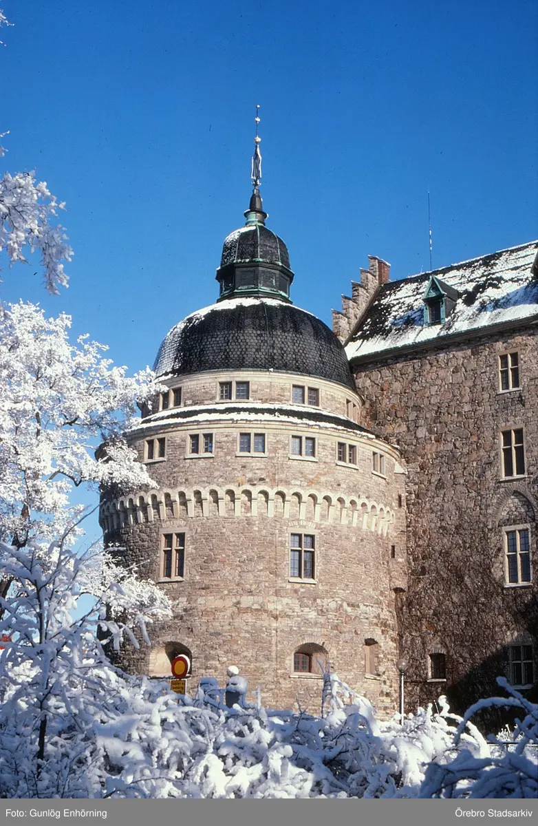 Sydvästra tornet på Örebro slott vintertid, 1982