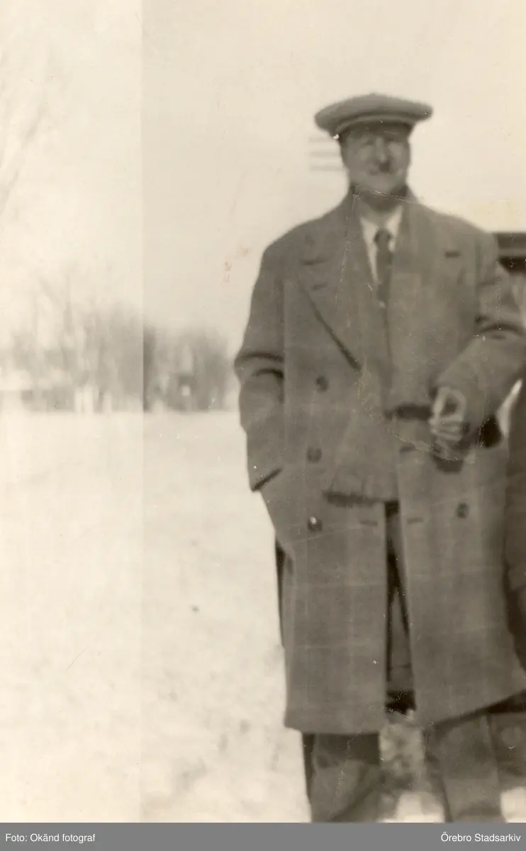 Edvin Redin i rock och hatt i vintrigt Minnesota, 1932