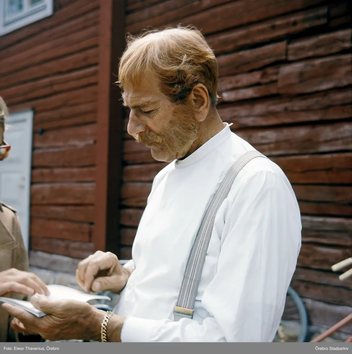 Skådespelaren Edvin Adolphson under TV-inspelningen av Markerells i Wadköping, 1968