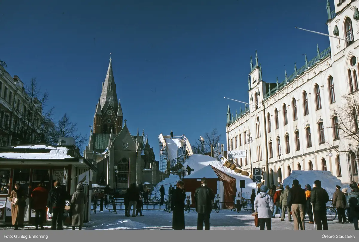 Uppbyggd snowboardbacke på Stortoget, 1996