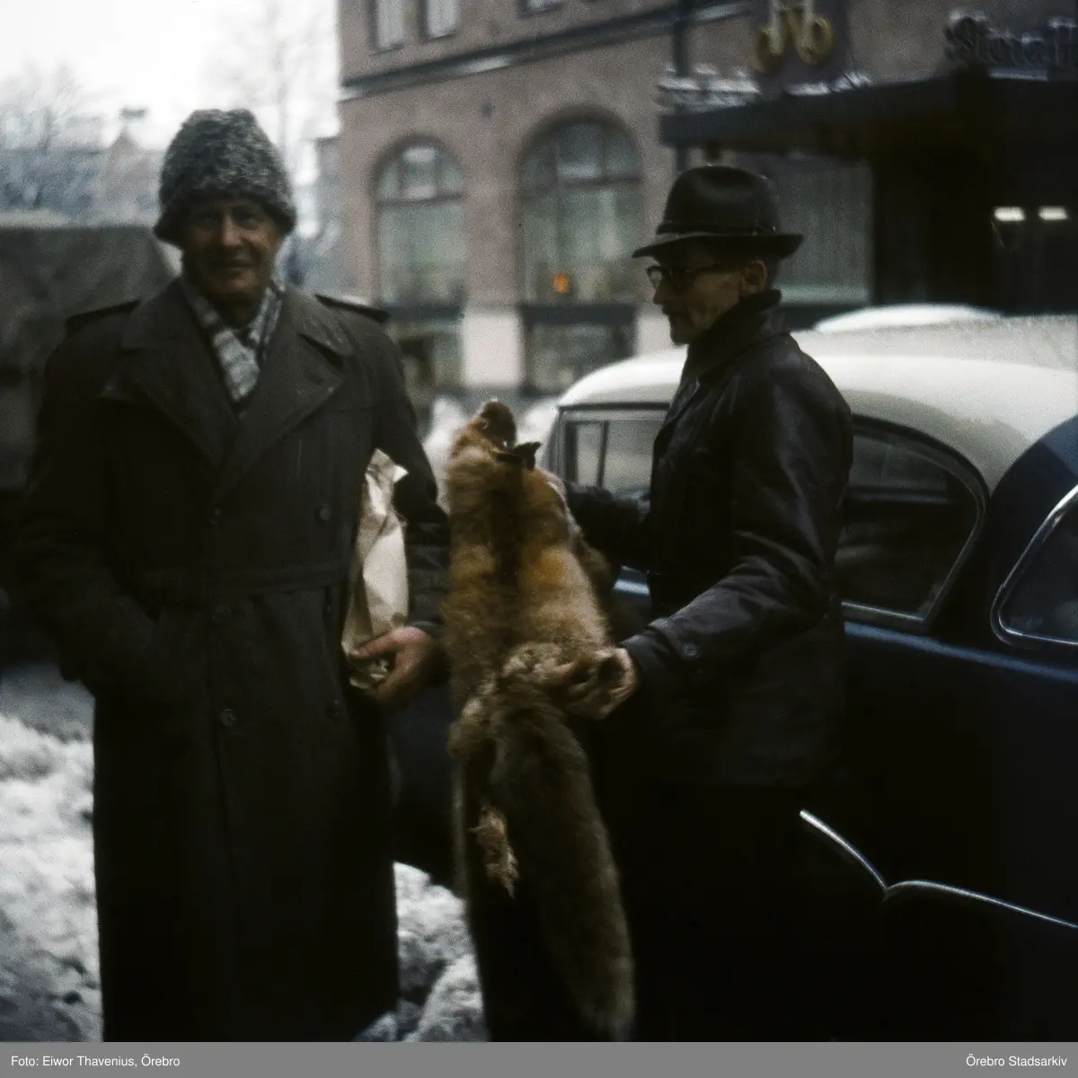 Försäljning av rävskinn utanför Stora Hotellet, 1960-1963
