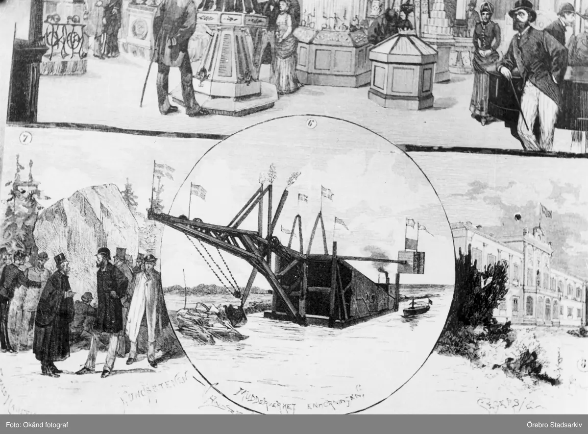 Teckning av mudderverket Enhörningen från Lantbruksutställning på Karolinska skolan, 1911