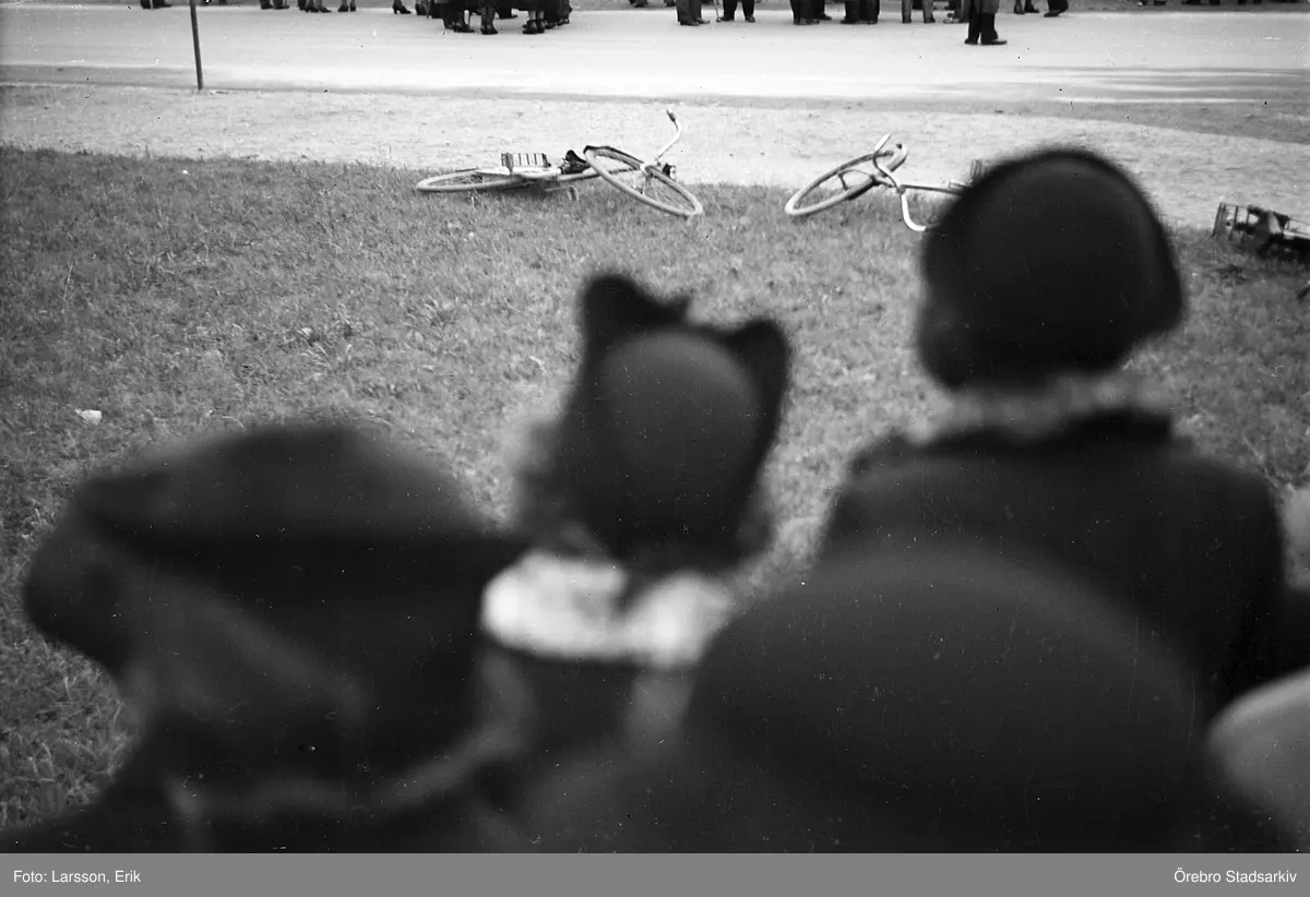 Publik vid luftskyddsövning på väster, 1938