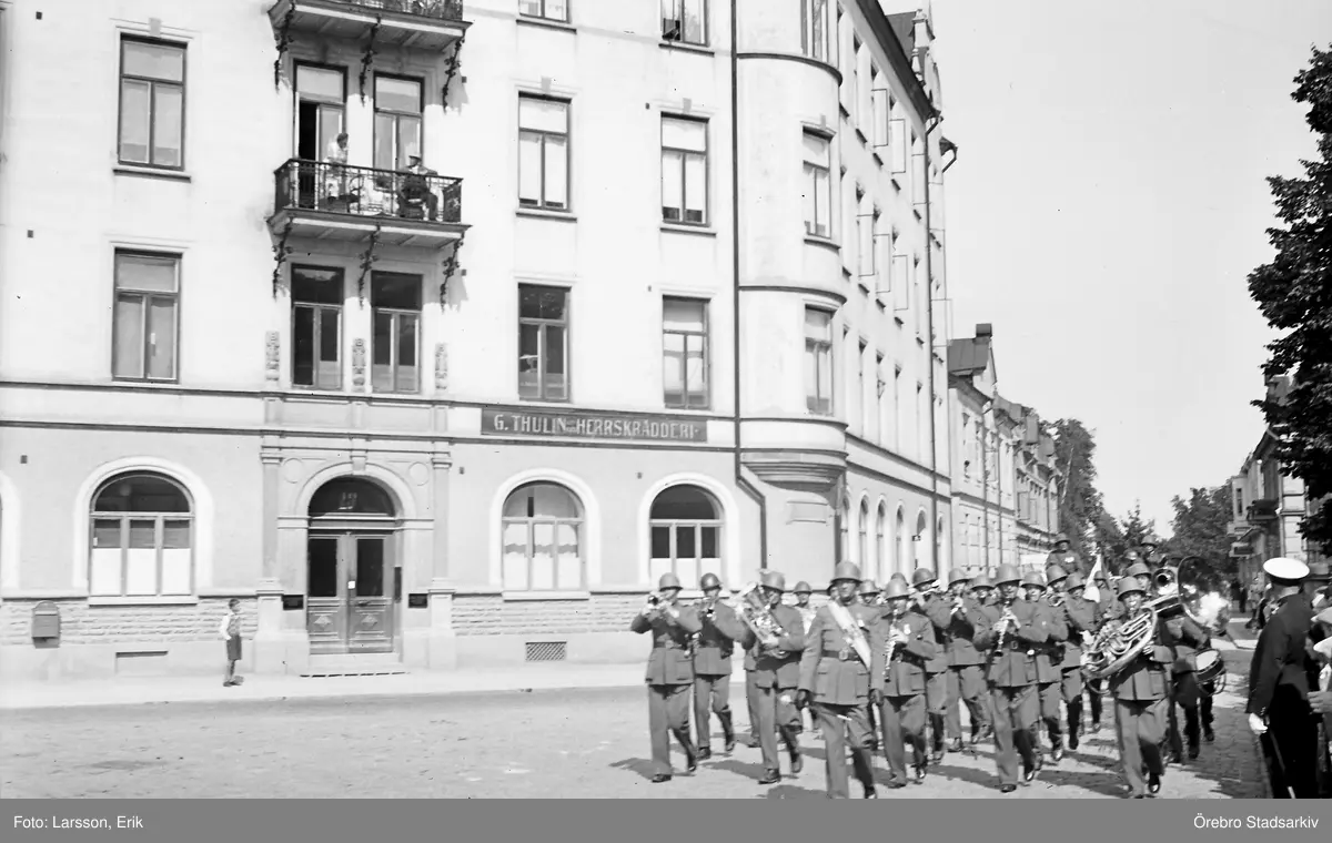 Militär musikkår på Trädgårdgatan, 1940