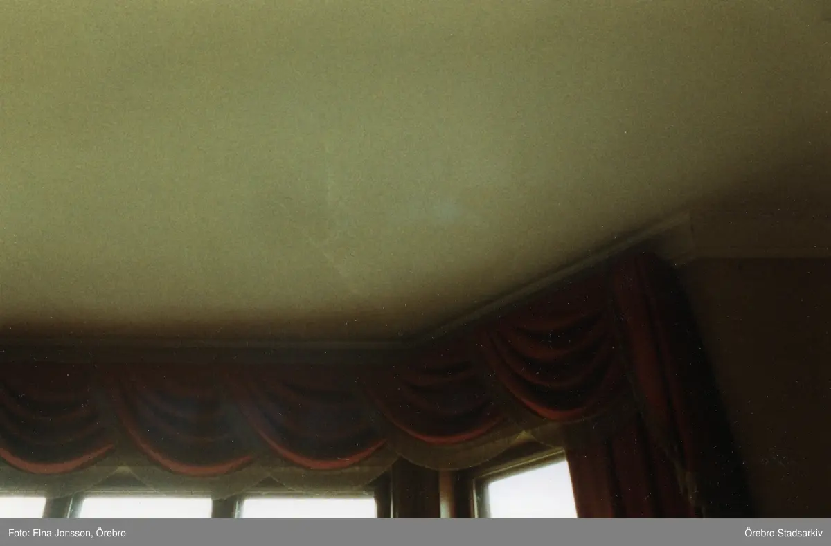 Gardinupphängning i Lundmarkska villans vardagsrum, ca 1985