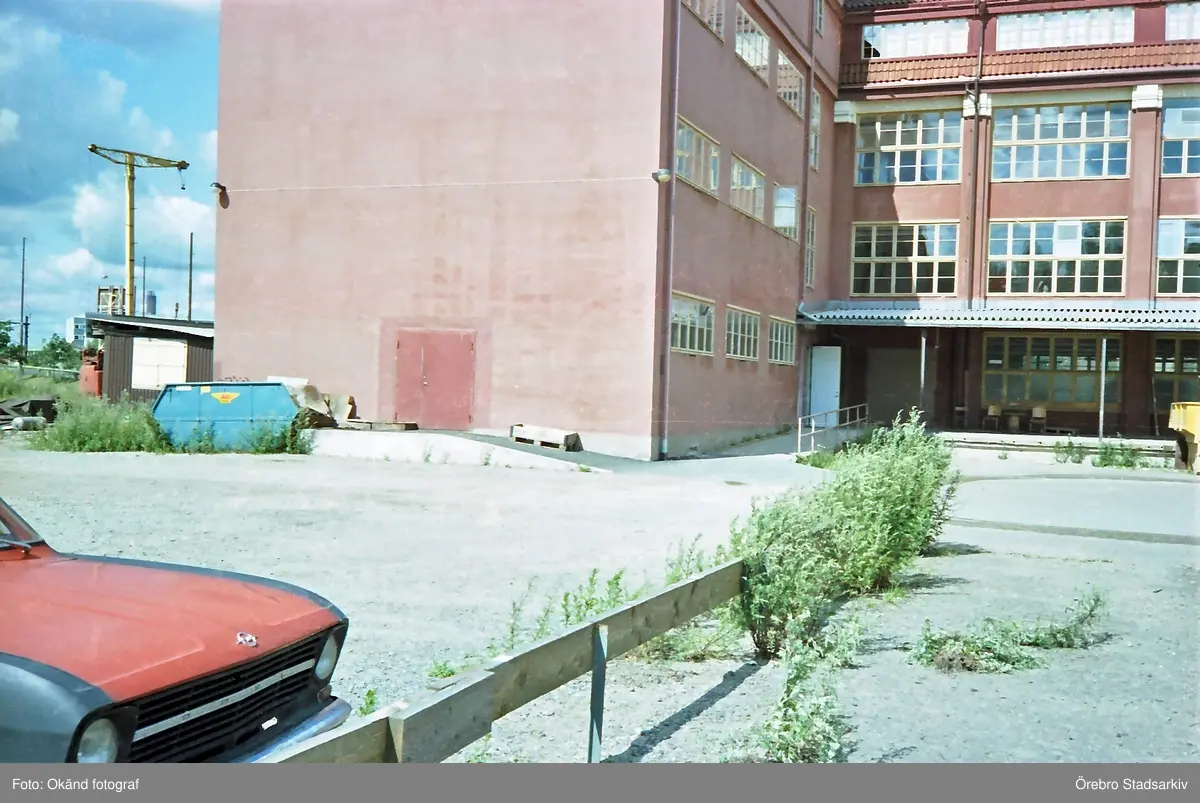 Parkering vid Oscariahuset på Fabriksgatan 52, 1980-tal