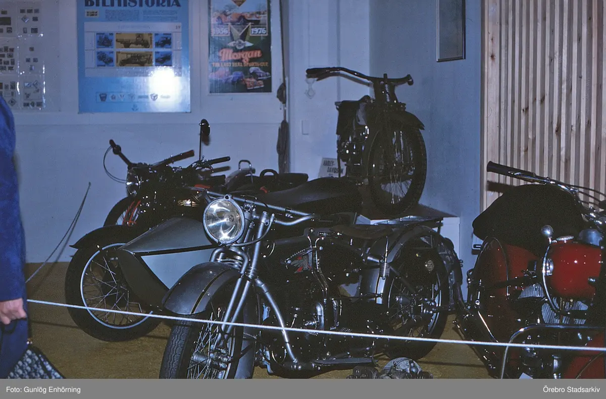 Motorcyklar utställda vid invigning av motormuseum vid Gustavsvik, 1983