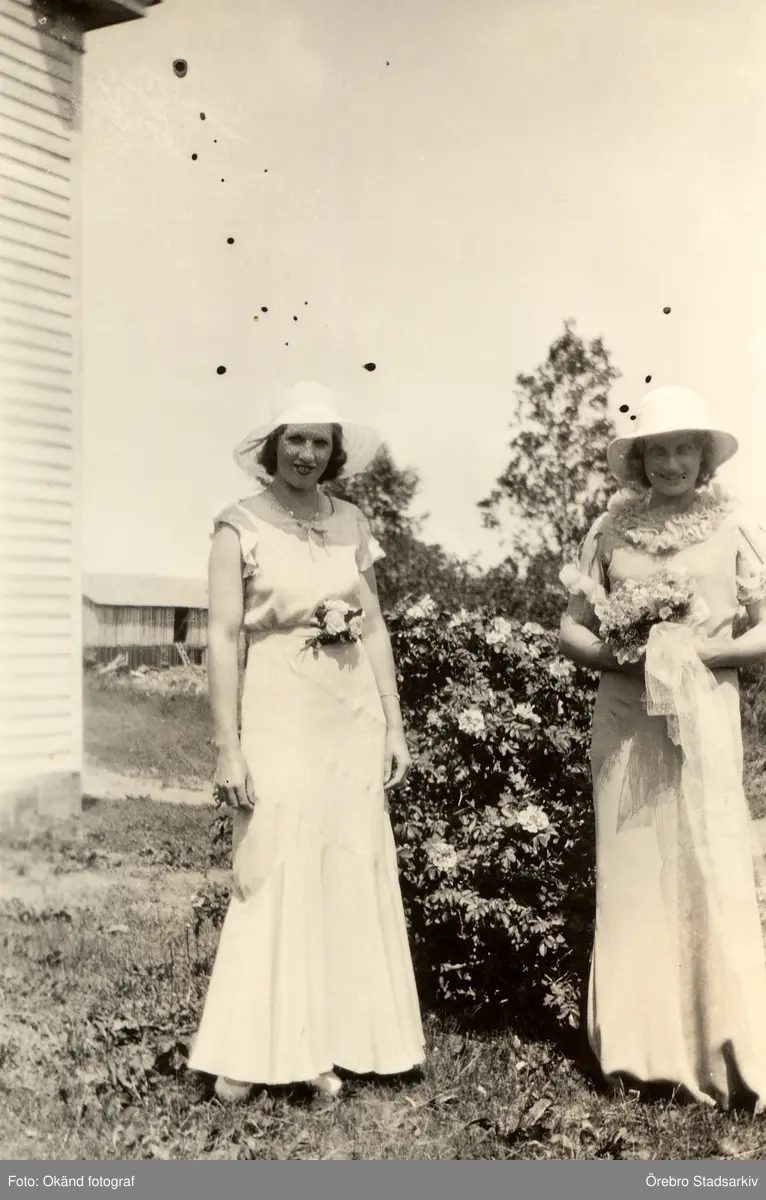 Två systrar, tärna och brud, på bröllop i Minnesota, 1933-06-24