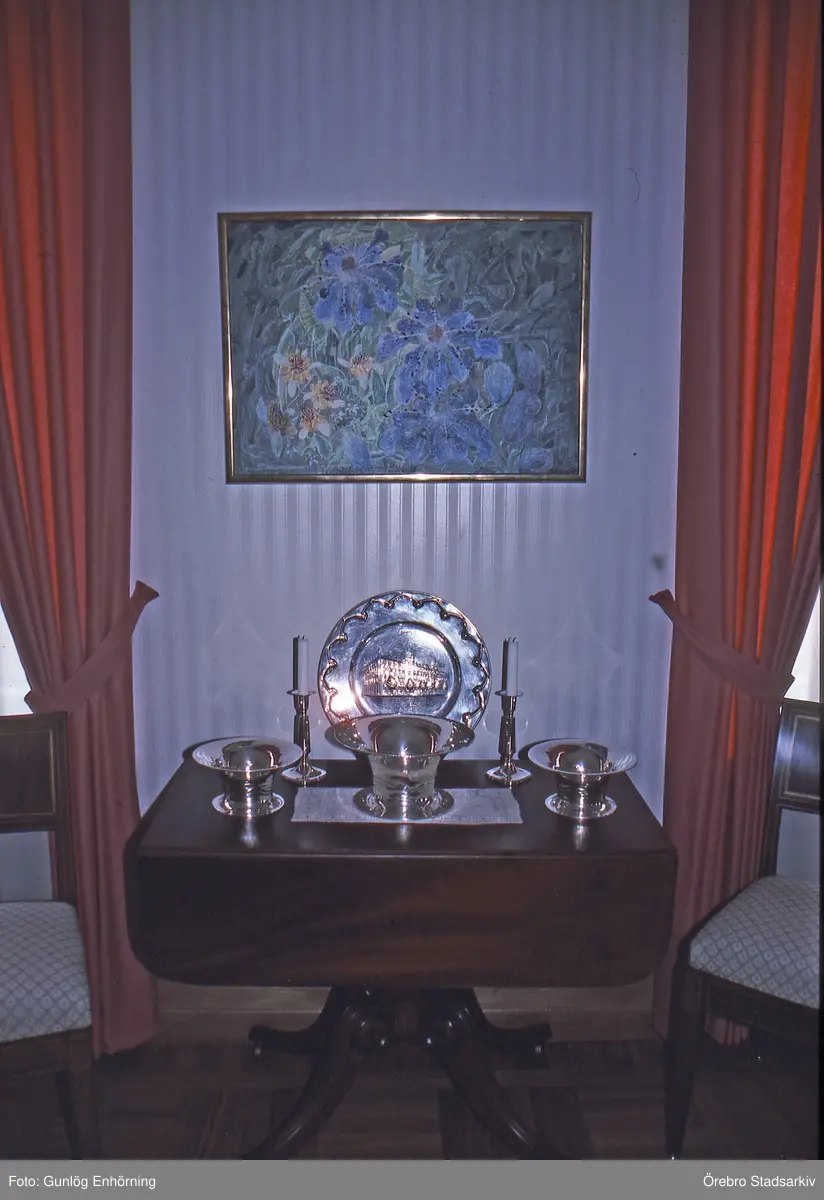 Pokaler på bord i representationsvåningen i Rådhuset,1988