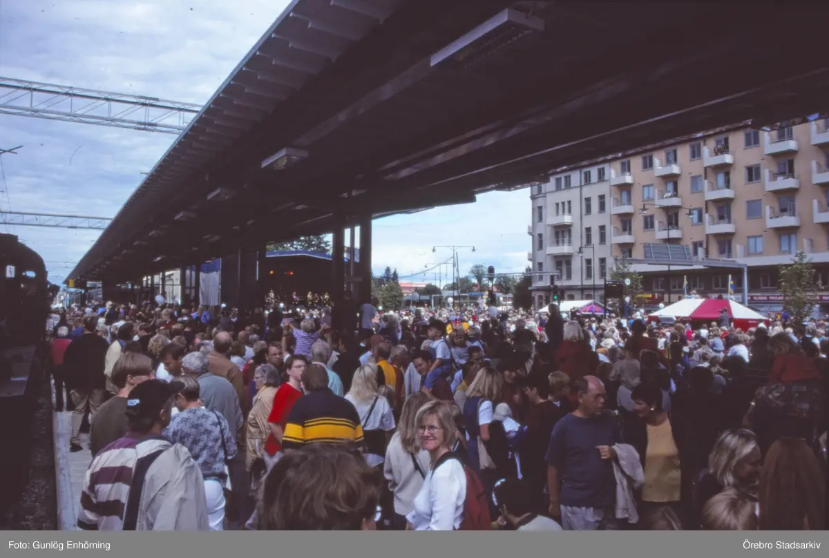 Publik ser på uppträdandet av Electric Banana Band, 1999