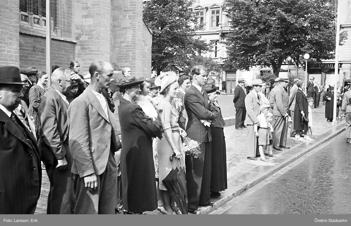 Åskådare vid Nikolaikyrkan vid militär parad på Regementets dag, 1939