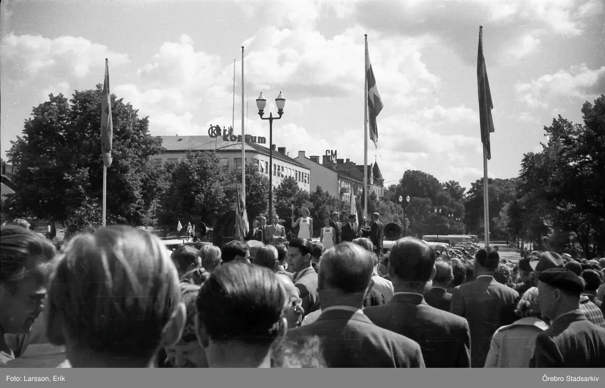 Besökare vid idrottsevenemang på Stortorget, 1950-tal