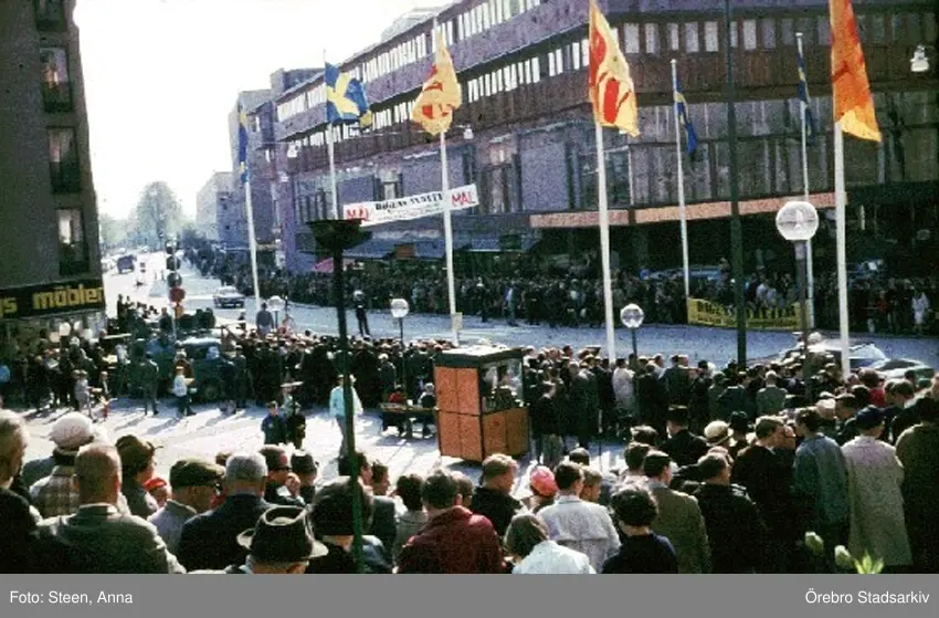 Åskådare vid cykeltävling på Drottninggatan, ca 1965