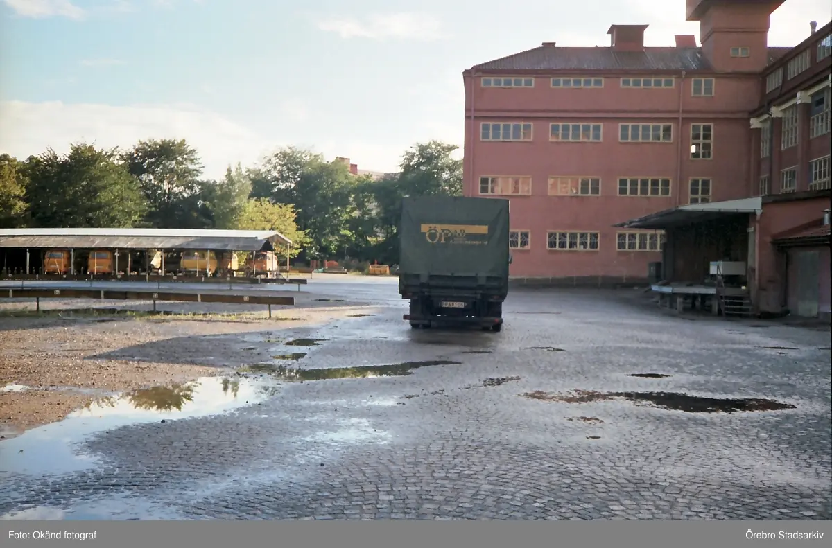 Parkering vid Oscariahuset på Fabriksgatan 52, 1980-tal