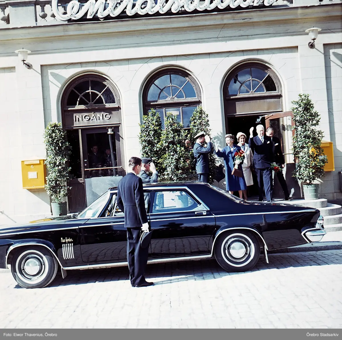 Kungaparet anländer till Centralstationen i Örebro, 1963