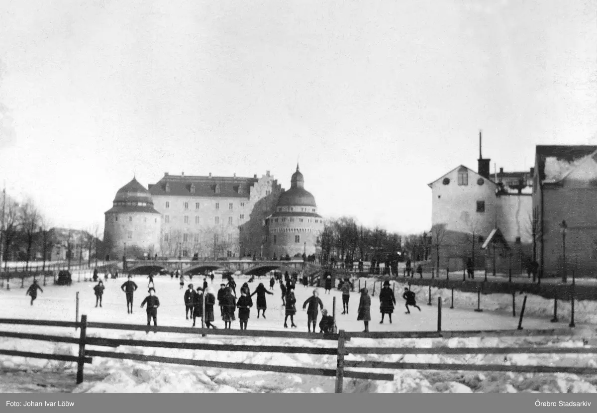 Skridskoåkning på Svartån vid Örebro slott, 1920-tal