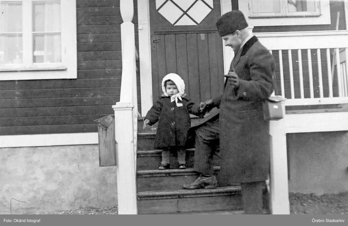 Far och dotter på trappan, ca 1926