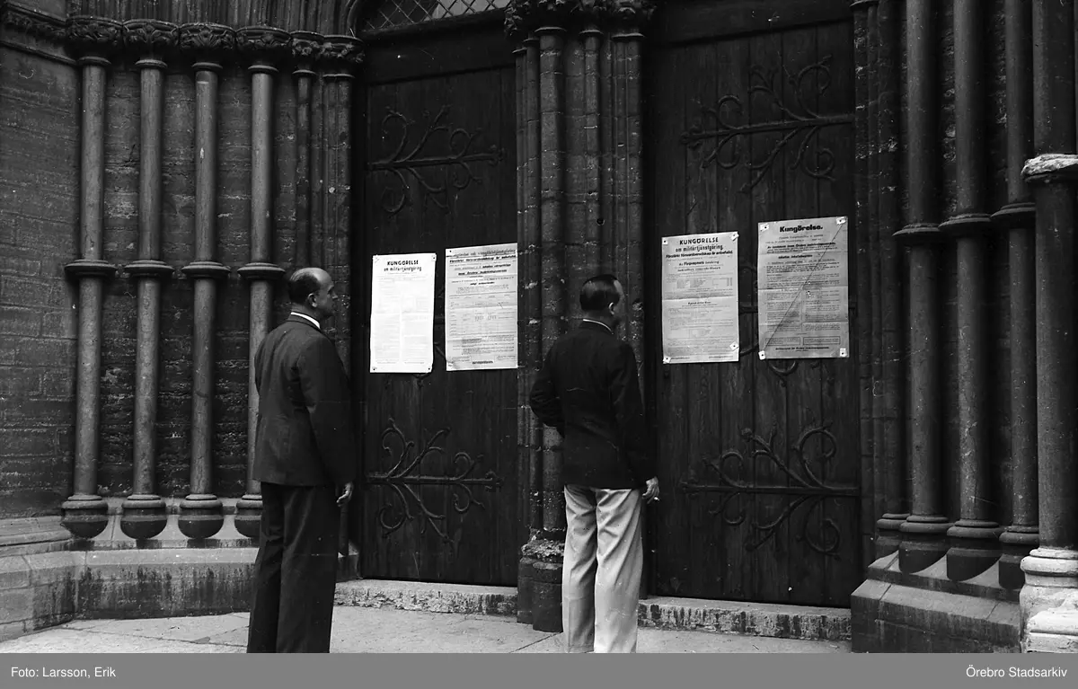 Kungörelse på Nikolaikyrkans port vid krigsutbrottet, 1939