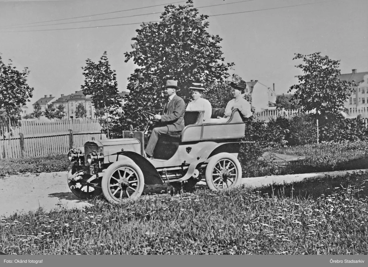 Herr Fagerlind kör bil av märket Scania Vabis på Markgatan, 1913