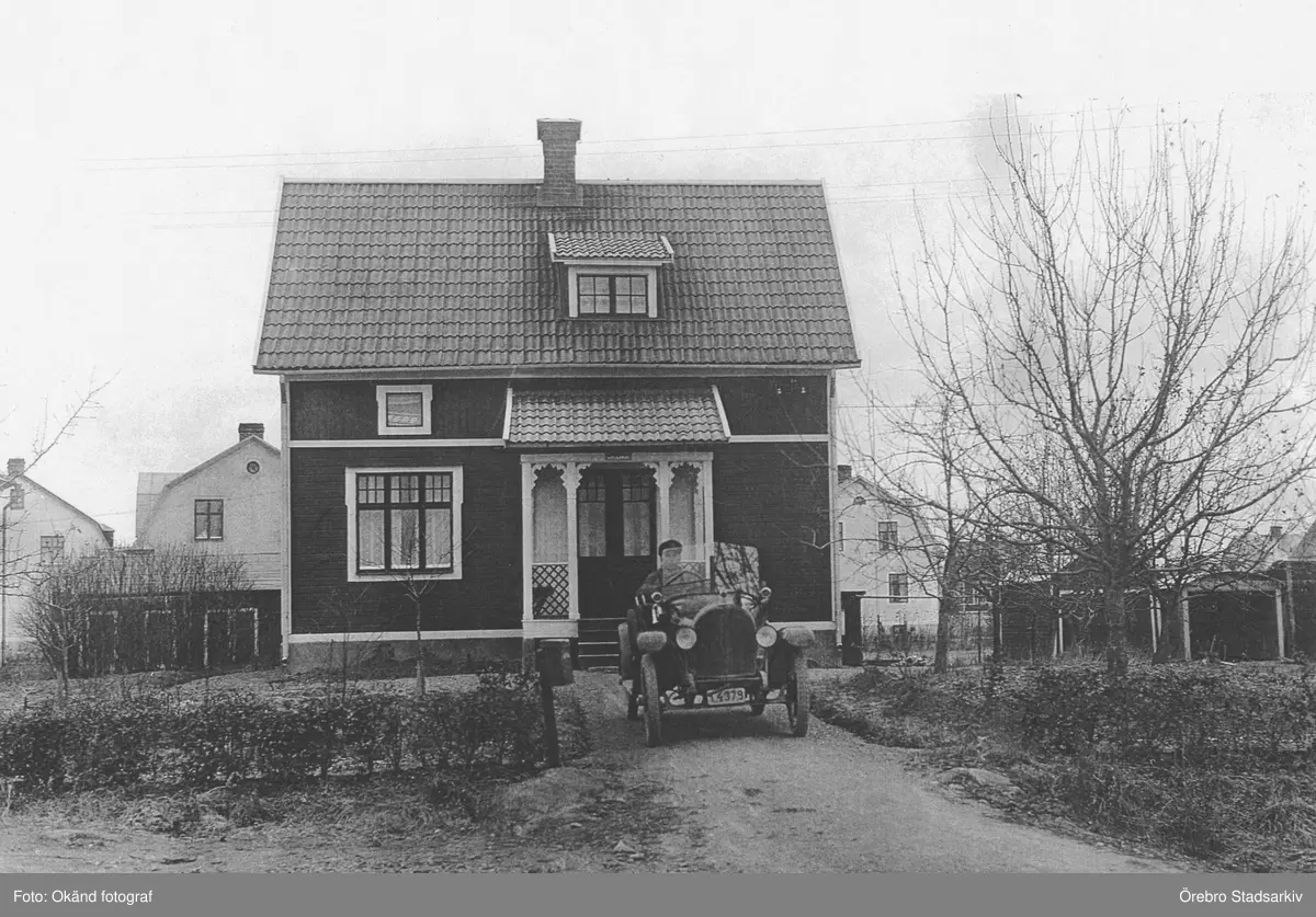 Arvid Eriksson i sin bi framför Villa Lindesnäs, 1920-tal
