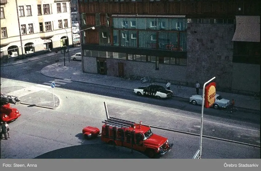 Brandbil och polisbil vid Medborgarhuset, efter 1965