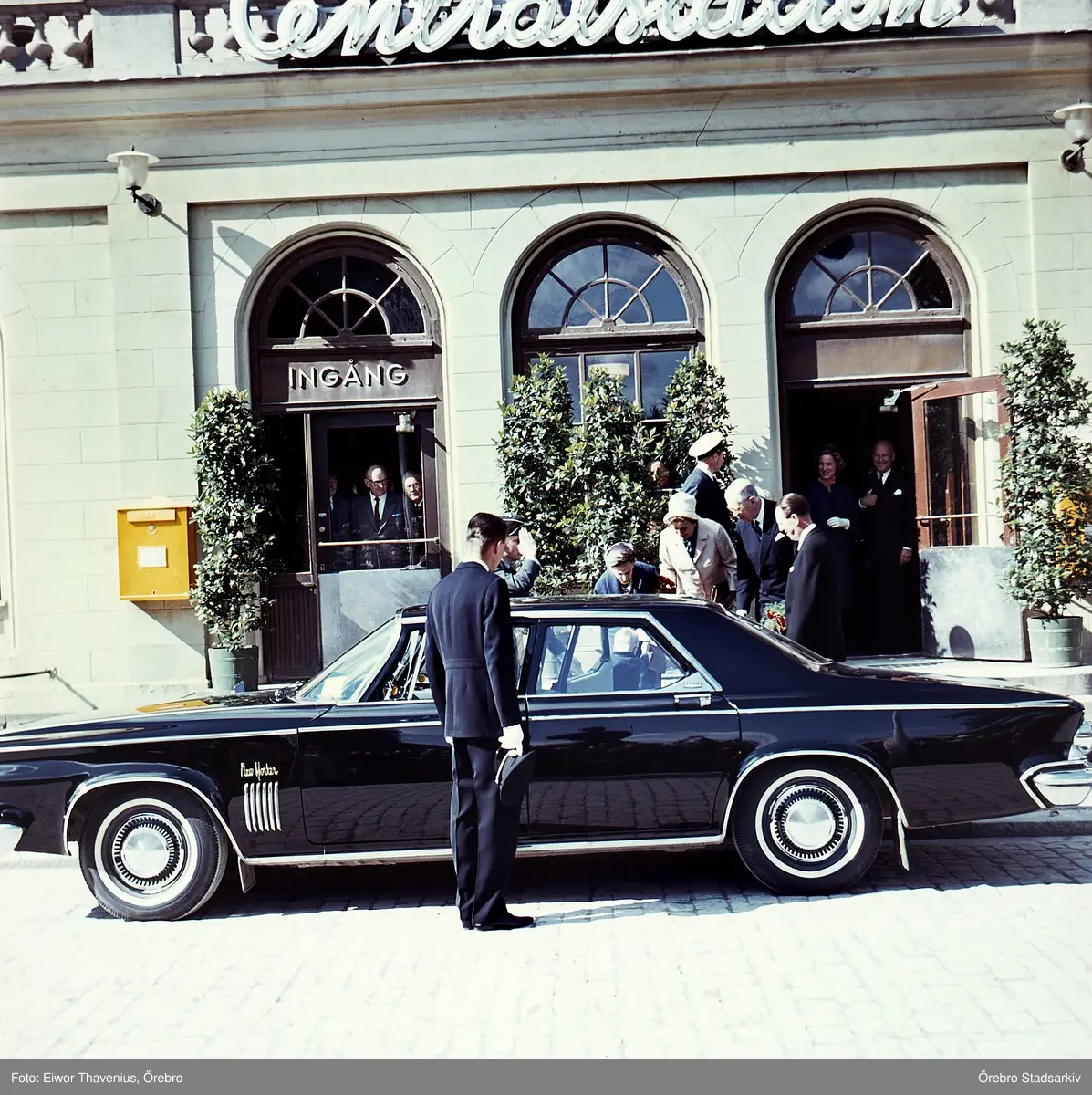 Kungaparet får blommor vid Centralstationen i Örebro, 1963