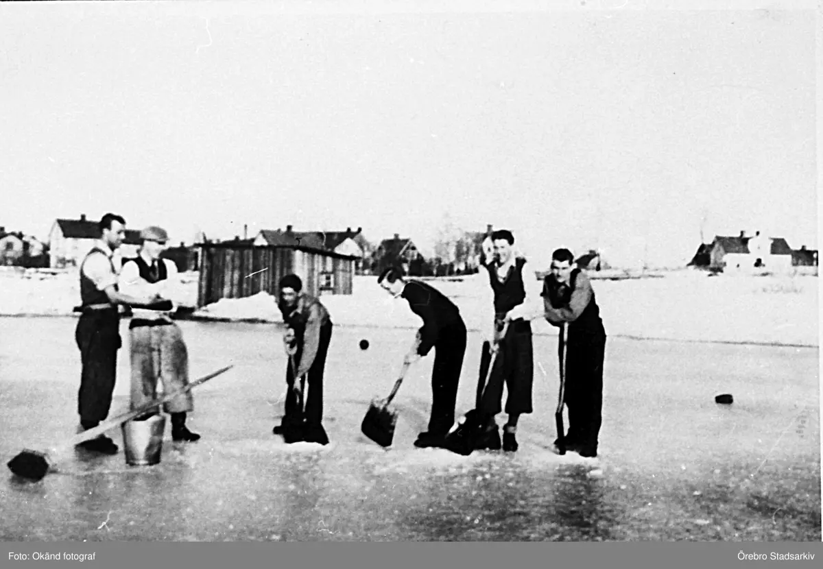 Reparation av bandybanans is vid Marks tegelbruk, 1934