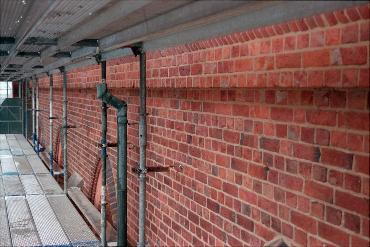 Trollhättans kyrka under pågående renovering, långhuset, norrfasaden