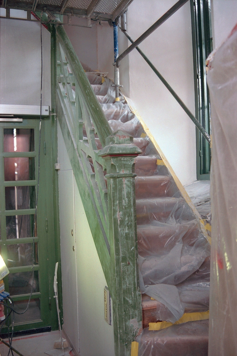 Trollhättans kyrka under pågående renovering, interiör, vapenhuset, detalj