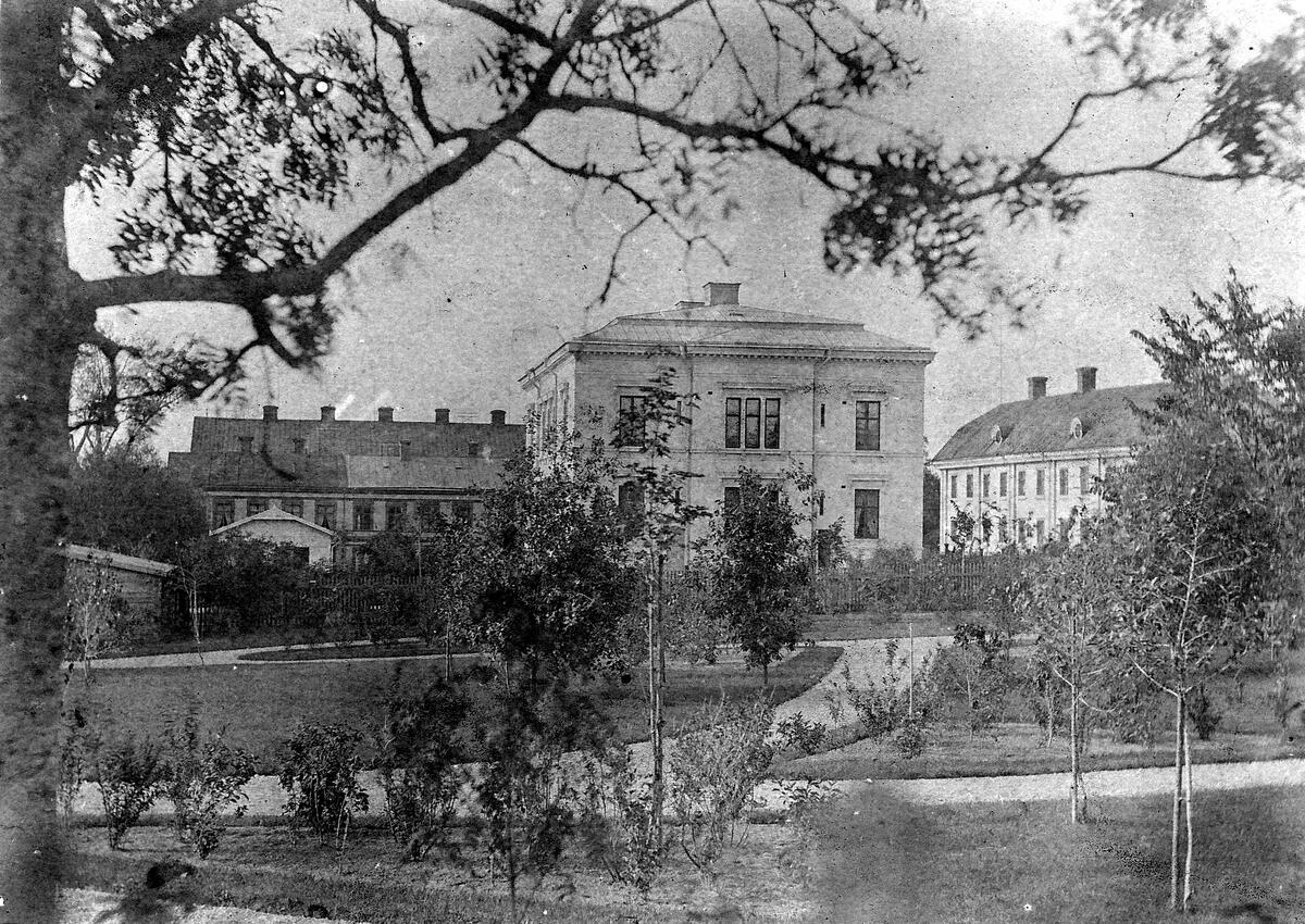 Längst till höger gamla biskopsgården, i mitten hypoteksföreningen. Till vänster syns gamla gymnasiet.