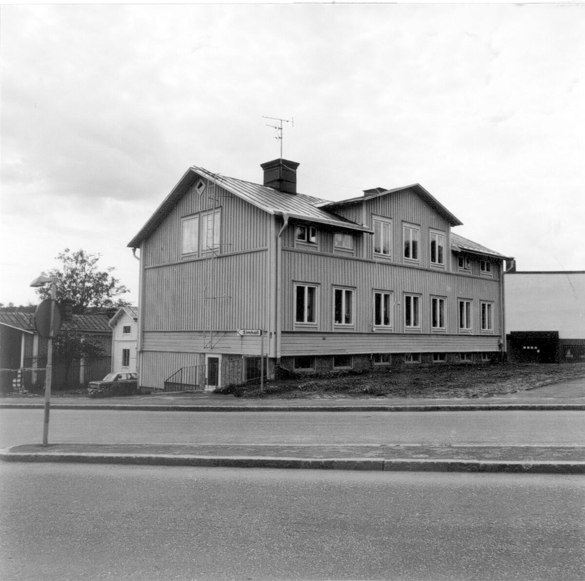 Bostadshus. Huset ligger kvar på Hovsgatan. Svenssons fiskaffär låg i undervåningen på husets baksida ner mot Östanbäcken